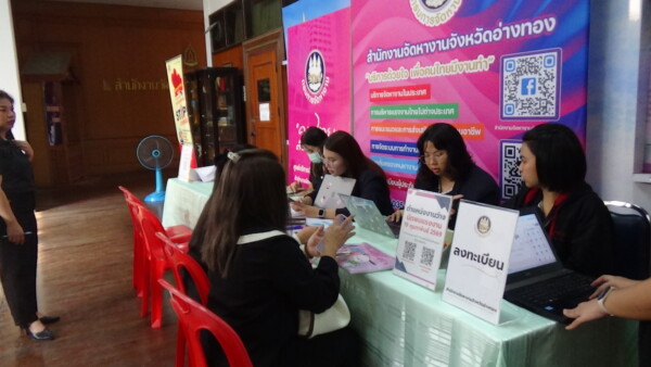 ซึ่งวันนี้มีว่างงานที่ลงทะเบียนผ่าน เพจ:สำนักงานจัดหางานจังหวัดอ่างทอง จำนวน 90 ราย ไม่ร่วมถึงเดินทางมาสมัครแบบมาลงทะเบียนอีกจำนวนมาก ทำให้พื้นที่รับสมัครเนืองแน่นไปด้วยผู้เดินทางมาสมัครงาน