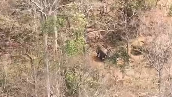 นาทีระทึก! ฮ.บินไล่ช้างป่าช่วยชุดดับไฟ