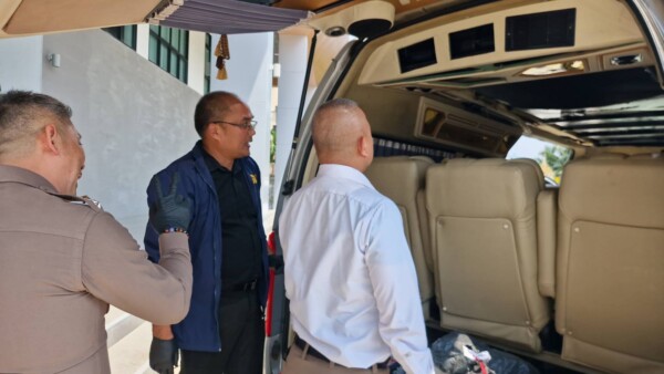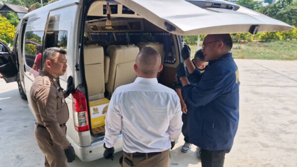 พร้อมตรวจยึดรถยนต์ตู้ TOYOTA Commuter สีบรอนซ์เงิน โทรศัพท์มือถือ iPhone 15 Pro Max