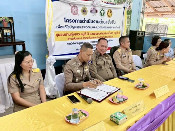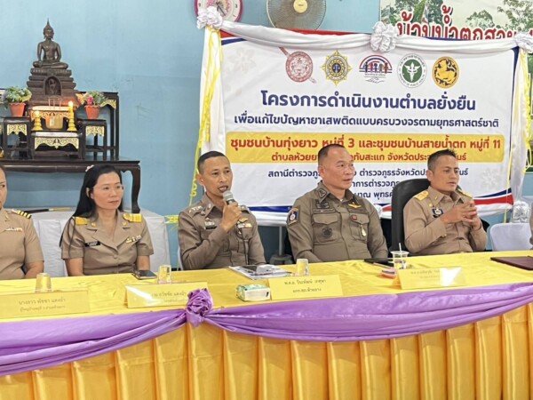 พ.ต.อ.วีระพัฒน์ เกตุษา ผกก.สภ.ห้วยยาง กล่าวว่า การดำเนินงาน“โครงการตำบลยั่งยืนเพื่อแก้ไขปัญหายาเสพติดแบบครบวงจรตามยุทธศาสตร์ชาติ ประจำปีงบประมาณ 2569” สถานีตำรวจภูธรห้วยยาง จ.ประจวบคีรีขันธ์ ได้กำหนดชุมชนเป้าหมาย 2 ชุมชน คือ บ้านทุ่งยาว ม.3 และบ้านน้ำตกสายหนึ่ง ม.11 ต.ห้วยยาง อ.ทับสะแก โดยมีเป้าหมายในการดำเนินการค้นหาผู้ใช้ ผู้เสพ ผู้ติดยาเสพติดในชุมชน โดยการ x-ray คนในชุมชนอายุเป้าหมาย 12-65 ปี เพื่อนำมาบำบัดรักษาในชุมชนด้วยกระบวนการ CBTx เพื่อ ลด-ละ-เลิกยาเสพติด โดยมีภาคีเครือข่ายเข้าร่วมสนับสนุนในโครงการ อาทิ สาธารณสุข ปกครอง ท้องถิ่น และตำรวจ ถือเป็น 4 เสาหลักของโครงการ และมีท่านนายอำเภอทับสะแก เป็นเสาเอกของโครงการ ช่วยกำกับดูแลหน่วยงานในปกครองอย่างดี ทั้งนี้โครงการดังกล่าวจะประสบความสำเร็จตามเจตนารมณ์ได้ ต้องได้รับความร่วมมือร่วมใจของคนในชุมชนที่สำคัญ คณะกรรมการคุ้มทุกคน จะเป็นผู้ช่วยสำคัญในการขับเคลื่อนโครงการ ผกก.สภ.ห้วยยาง กล่าว
