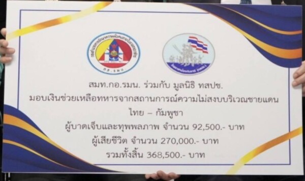 สมท.กอ.รมน.ร่วมกับ มูลนิธิ ทสปช.เข้าเยี่ยมให้กำลังใจทหารชายแดนไทย – กัมพูชา พร้อมทั้งมอบเงิน 1.26 ล้าน เพื่อเยียวยา และ จัดหาอุปกรณ์เครื่องช่วยหายใจ