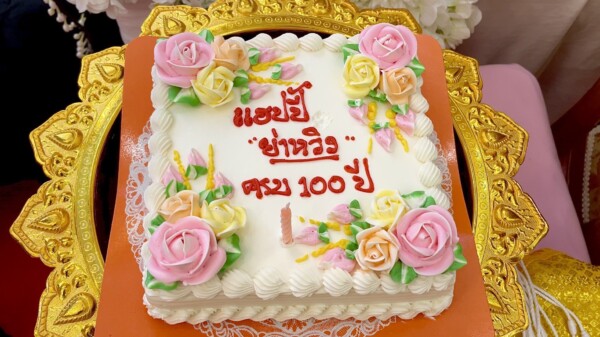 คุณย่าสวิง สุขถาวร เกิดวันที่ 21 กุมภาพันธ์ พ.ศ.2469 มีสุขภาพแข็งแรง หน้าตาแจ่มใส ความจำดี พูดคุยสื่อสารรู้เรื่อง จะมีเพียงหูที่ได้ยินไม่ชัด ต้องพูดเสียงดังและใกล้ๆ จึงจะได้ยิน คุณย่าสวิง อยู่ในความดูแลของ“หลวงพี่ต่อ” ที่ท่านเมตตาอุปการะนำคุณย่าสวิงมาดูแลกว่า 10 ปีแล้ว ซึ่งหลวงพี่ต่อ ดูแลเรื่องที่อยู่อาศัยพร้อมจ้างคนคอยดูแล ตลอดถึงเรื่องอาหารการกิน ดูแลอย่างดีประดุดเปรียบเสมือนญาติของตัวเอง วันนี้ครบศตวรรษ ที่คุณย่าสวิง อายุ 100 ปี จึงได้นิมนต์พระสงฆ์ภายในวัดมาเจริญพระพุทธมนต์ให้พร และถวายภัตตาหารเพล พร้อมมอบเค๊กวันเกิดและอวยพรให้กับคุณย่าสวิง จากนั้นพระสงฆ์ได้นำสายสิญจน์ผูกข้อมือให้กับคุณย่าสวิง เพื่อความเป็นสิริมงคล งานนี้หลวงพี่ต่อ ตั้งใจทำให้คุณย่าสวิง เพราะหาไม่ง่ายที่คนเราจะมีอายุยืนถึง 100 ปีแบบนี้ เรียกได้ว่าสร้างภาพจำแห่งความสุข สร้างรอยยิ้มความอบอุ่น และความทรงจำดีๆ ที่สุดประทับใจ