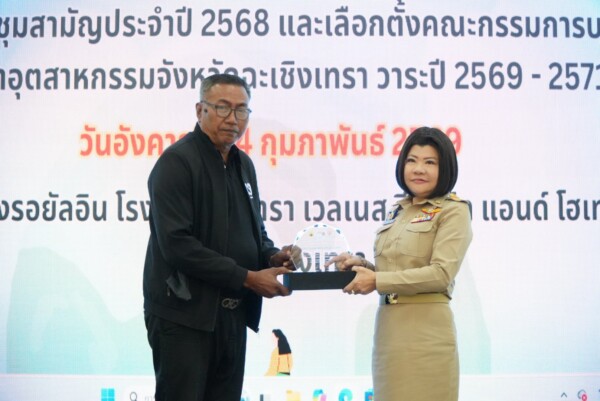 วันอังคารที่ 24 กุมภาพันธ์ 2569 เวลา 15.00 น. ณ ห้องรอยัลอิน โรงแรมซันธารา เวลเนส รีสอร์ท แอนด์ โฮเทล อำเภอเมืองฉะเชิงเทรา จังหวัดฉะเชิงเทรา นางสาวฉัตรประอร นิยม ผู้ว่าราชการจังหวัดฉะเชิงเทรา เป็นประธานมอบโล่ประกาศเกียรติคุณ และรับมอบชุดไม้ง่ามระงับเหตุจากสภาอุตสาหกรรมจังหวัดฉะเชิงเทรา เพื่อส่งต่อให้เจ้าหน้าที่ตำรวจได้ใช้ประโยชน์ พร้อมด้วย นายพงษ์ศักดิ์ ธีระกิตติวัฒนา หัวหน้าสำนักงานป้องกันและบรรเทาสาธารณภัย นายสมบัติ ทั่งทอง รองนายแพทย์สาธารณสุขจังหวัดฉะเชิงเทรา นายสุกัณฑ์ โสรัจจกิจ ประธานสภาอุตสาหกรรมจังหวัดฉะเชิงเทรา คณะกรรมการบริหารสภาอุตสาหกรรมจังหวัดฉะเชิงเทรา และผู้แทนส่วนราชการที่เกี่ยวข้องเข้าร่วมงาน
