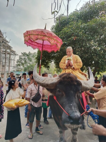 ทั้งนี้ นายบุญหลง ผู้เป็นบิดา มีอาชีพเป็นพ่อค้าขายเนื้อวัวและเนื้อควาย จึงมีเพื่อนพ้องในวงกรมปศุสัตว์จำนวนมาก โดยเฉพาะในพื้นที่จังหวัดชลบุรี ได้นำควายแชมป์ “ฉลามชล” มาร่วมแสดงความยินดีและช่วยสร้างสีสันในงานอุปสมบทบุตรชายครั้งสำคัญ