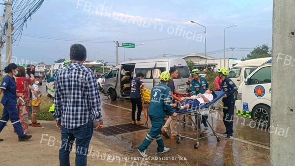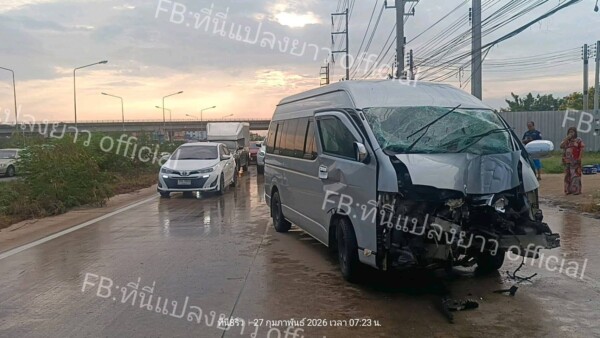 รถตู้รับส่งนักเรียนเสียหลักชนเสาไฟฟ้า นักเรียนบาดเจ็บ 8 ราย ที่ฉะเชิงเทรา
