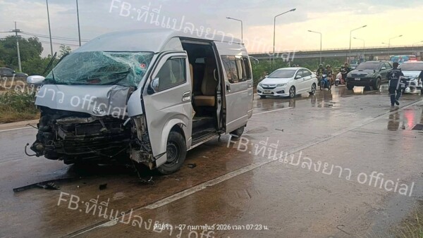 รถตู้รับส่งนักเรียน ซึ่งกำลังเดินทางไปส่งนักเรียนในตัวเมืองฉะเชิงเทรา และโรงเรียนเบญจมราชรังสฤษฎิ์ 2 ได้เสียหลักเนื่องจากถนนลื่น ทำให้ไม่สามารถควบคุมรถได้ ก่อนพุ่งชนเสาไฟฟ้าของหลวง