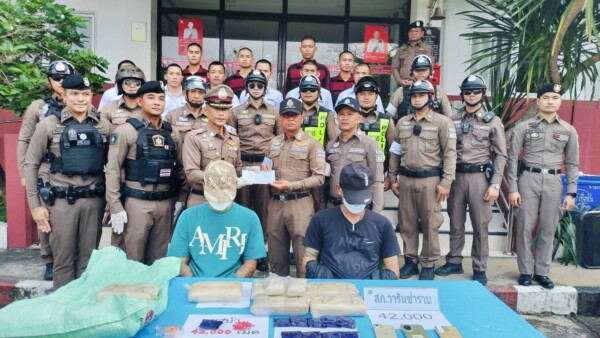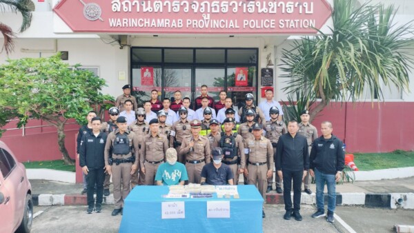 สภ.วารินชำราบ แถลงข่าว จับ 2 หนุ่ม พร้อมยาบ้า 42,000 เม็ด