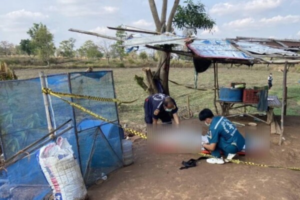 สลด! ลูกเลี้ยง ใช้ค้อนทุบหัวพ่อเลี้ยงดับคากระท่อมนา ที่จ.อุบลราชธานี