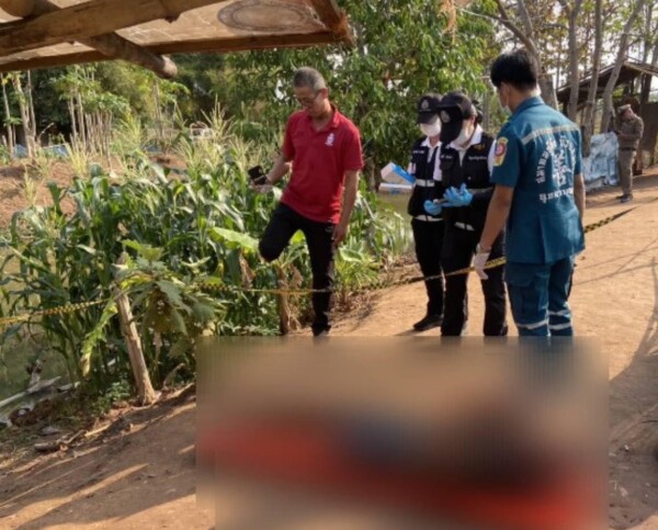 วันที่ 27 ก.พ.69 เวลา ประมาณ 07.00 น.  ร.ต.อ.เผย  วงษ์คำชัย รอง สว.(สอบสวน) สภ.ม่วงเฒ่า อ.เขมราฐ จ.อุบลฯ ได้รับแจ้งจากศูนย์วิทยุสื่อสาร สภ.ม่วงเฒ่า ว่า มีคนเสียชีวิตโดยไม่ทราบสาเหตุที่กระท่อมนาเขตบ้านดอนโด่ ม.10 ต.หัวนา อ.เขมราฐ จ.อุบลฯ จึงรายงานผู้บังคับบัญชาทราบ ก่อนรุดไปตรวจสอบยังที่เกิดเหตุ พร้อมจนท.หน่วยกู้ภัยทิวาเขมราฐ  เมื่อไปถึงที่เกิดเหตุพบศพเพศชาย ทราบชื่อในเวลาต่อมาคือ นายล้อม (สงวนนามสกุล) อายุ 66 ปี เป็นชาว ต.หัวนา อ.เขมราฐ จ.อุบลฯ สภาพศพนอนเสียชีวิตอยู่ตรงประตูทางเข้ากระท่อมนา มีบาดแผลและมีเลือดออกที่บริเวณศรีษะ โดยมีแผลฉีกขาดที่ศีรษะ 4 ซม. มีเลือดอาบที่ใบหน้าและศีรษะ