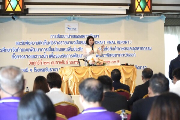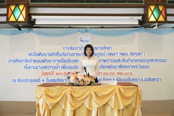 วันศุกร์ที่ 27 กุมภาพันธ์ 2569 เวลา 09.00 น. ณ ห้องประชุมชลธี 1 โรงแรมซันธารา เวลเนส รีสอร์ท แอนด์ โฮเทล อำเภอเมืองฉะเชิงเทรา จังหวัดฉะเชิงเทรานางสาวฉัตรประอร นิยม ผู้ว่าราชการจังหวัดฉะเชิงเทรา เป็นประธานเปิดการสัมมนานำเสนอผลการศึกษาและรับฟังความคิดเห็นต่อร่างรายงานฉบับสมบูรณ์ (Draft Final Report) การศึกษาจัดทำแผนพัฒนาการเชื่อมโยงและเพิ่มประสิทธิภาพการขนส่งสินค้าเกษตรและอุตสาหกรรมทั้งทางรางและทางน้ำ เพื่อรองรับการพัฒนาพื้นที่เขตพัฒนาพิเศษภาคตะวันออก พร้อมด้วย นายสุรพงษ์ เมี้ยนมิตร รองผู้อำนวยการสำนักงานนโยบายและแผนการขนส่งและจราจร นายธนกฤต รัตนพันธ์ ท้องถิ่นจังหวัดฉะเชิงเทรา นายทศพร พยูรวงศ์ รองผู้อำนวยการแขวงทางหลวงฉะเชิงเทรา นายวราห์ เขินประติยุทธ ผู้อำนวยการกลุ่มงานยุทธศาสตร์และข้อมูลเพื่อการพัฒนาจังหวัด นายยุทธนา มาตเจือ ประธานหอการค้าจังหวัดฉะเชิงเทรา ผู้แทนส่วนราชการ ภาคเอกชน และผู้มีส่วนเกี่ยวข้องเข้าร่วมการสัมมนา