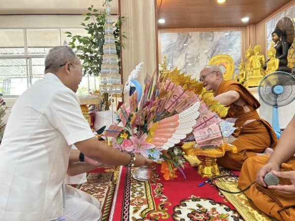 ผอ.กองพัฒนาและส่งเสริมการบริหารงานท้องถิ่นทอดผ้าป่าสามัคคีมหากุศลเพื่อจัดหารายได้สร้างพระพุทธรูปปางมารวิชัยศิลปะสุโขทัย พระพุทธมนต์สิริมงคลบพิธ วัดหนองคู อำเภอเมืองศรีสะเกษ