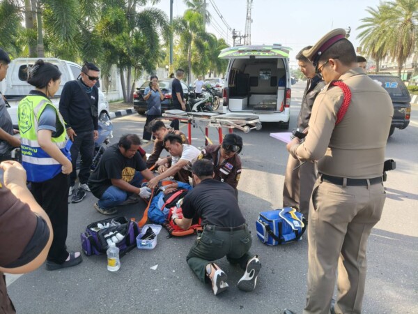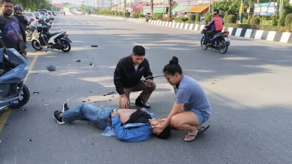 ผู้กำกับ สภ.สามพรานขับรถมาทำงาน พบอุบัติเหตุรีบจอดรถเข้าช่วยเหลือ ลุงวัย 58 ขี่รถจยยย.เกิดอาการวูบเสียหลักชนท้ายรถกระบะบาดเจ็บ วิทยุเรียกรถพยาบาล เจ้าหน้าที่มาช่วยนำส่งโรงพยาบาล