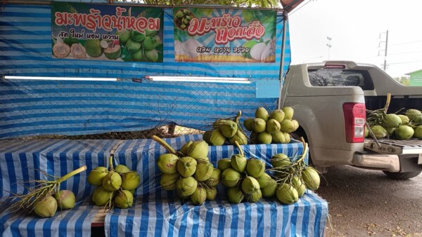 วันที่ 27 กพ.69 เจ้าของสวนมะพร้าวน้ำหอมบ้านสวนทุเรียน อ.กบินทร์บุรี จ.ปราจีนบุรี พลิกวิกฤตหลังจากราคามะพร้าวน้ำหอมราคาตกต่ำสุดๆลูกละ 2 บาทในรอบหลาย 10 ปีที่ผ่านมาพ่อค้าที่เคยรับซื้อจากสวนไม่รับซื้อ จึงต้องนำมะพร้าวน้ำหอมในสวนมาแปรรูปตั้งร้านริมทางขายสดๆริมถนนสาย 304 ขาเข้ากบินทร์บุรี ก่อนถึงสถานีตำรวจภูธรกบินทร์บุรี เจ้าของสวนจะเลือกตัดมะพร้าวน้ำหอมใหม่ๆสดๆมาแปรรูปขายทุกวัน