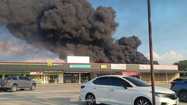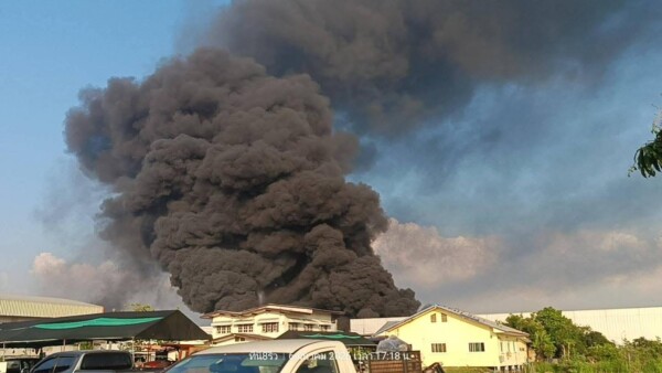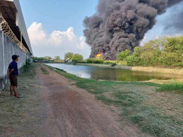 ด่วน! ไฟไหม้โรงงานผลิตเคมีภัณฑ์ย่านบ้านโพธิ์ ระดับความรุนแรงเบอร์ 5 เจ้าหน้าที่เร่งคุมเพลิง