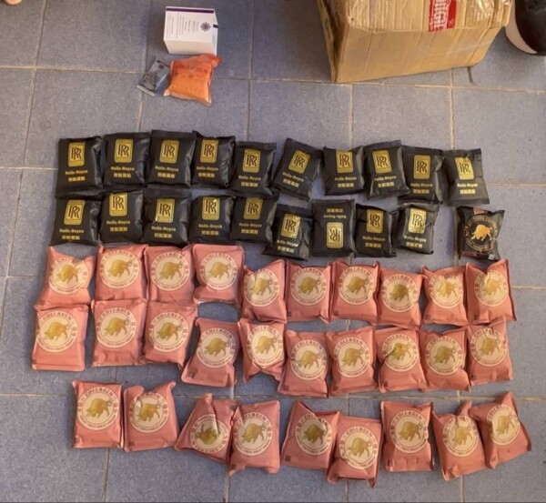 น้ำหนักรวมพร้อมซองประมาณ 6,500 กรัม นอกจากนี้ยังยึดกล่องกระดาษขนาดกว้าง 23 ซม. ยาว 29 ซม. สูง 16 ซม. จำนวน 1 ใบ ซึ่งใช้บรรจุยาเสพติดดังกล่าว