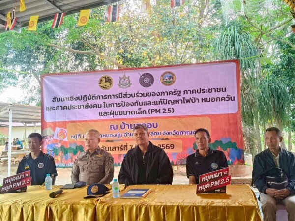 ทั้งนี้ นายวสันต์ สุนจิรัตน์ ประธานสภาลมหายใจกาญจนบุรี พร้อมด้วยคณะทำงานสภาลมหายใจกาญจนบุรี และคณะอาจารย์จากมหาวิทยาลัยมหิดล ได้ร่วมประชาสัมพันธ์และสร้างการมีส่วนร่วมในการตระหนักรู้ถึงผลกระทบจากการเผาในที่โล่งและพื้นที่การเกษตร พร้อมรณรงค์ให้ทุกภาคส่วนร่วมกันลดการเผาในที่โล่ง เพื่อแก้ไขปัญหาไฟป่า หมอกควัน และฝุ่น PM2.5 อย่างจริงจัง
