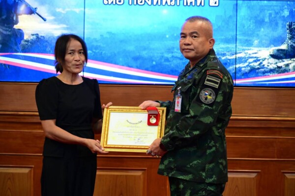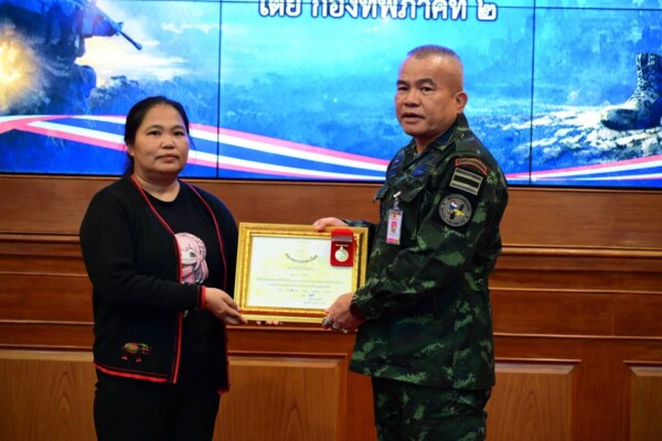 พลโท วีระยุทธ รักศิลป์ แม่ทัพภาคที่ 2 พร้อมด้วย บริษัท เครือเจริญโภคภัณฑ์ จำกัด (CP) มอบเหรียญบางระจันพร้อมใบประกาศนียบัตร ทุนการศึกษาและเงินช่วยเหลือเยียวยาให้แก่บุตรและครอบครัวกำลังพลที่เสียชีวิตจากเหตุการณ์ปะทะชายแดนไทย–กัมพูชา เมื่อวันที่ 5 มีนาคม 2569 ณ กองบัญชาการกองทัพภาคที่ 2