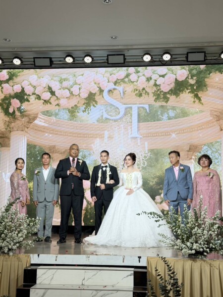 สมุทรปราการ – เมื่อวันที่ 8 มีนาคม 2569 ณ ครัวบุญเลิศ บางปู จังหวัดสมุทรปราการ ได้มีพิธีฉลองมงคลสมรสอย่างชื่นมื่นระหว่าง นางสาวศศิปรียา พรชัยเรืองเดช (ทราย) บุตรสาวของ คุณพ่อสาธิต และคุณแม่ฉัตต์สุดา พรชัยเรืองเดช กับ ส.ต.อ.ธนาคาร ถุงเสน (เคน) ผบ.หมู่(ป.) สน.เพชรเกษม บุตรชายของ คุณพ่อสมเดช และคุณแม่สุมาลี ถุงเสน