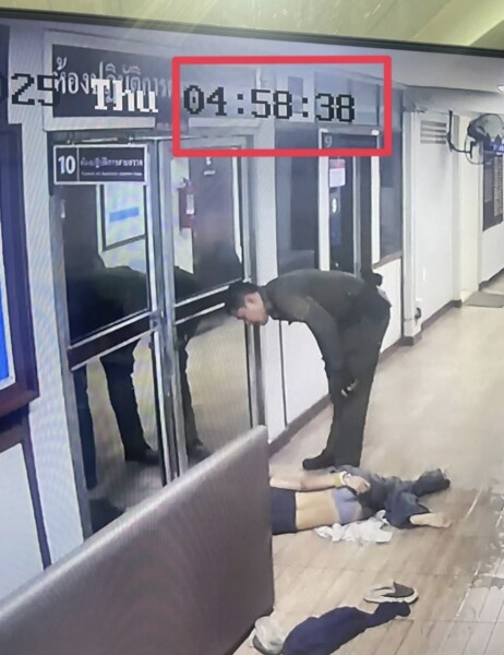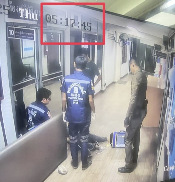 ต่อมาเวลาประมาณ 03.00 น. ผู้บาดเจ็บถูกพาไปที่โรงพัก และนอนอยู่ภายในสถานีตำรวจ กระทั่งเวลาประมาณ 05.00 น. เกิดอาการชัก เจ้าหน้าที่จึงประสานกู้ภัยเข้ามาช่วยเหลือ ก่อนจะเสียชีวิตในเวลาประมาณ 06.00 น.