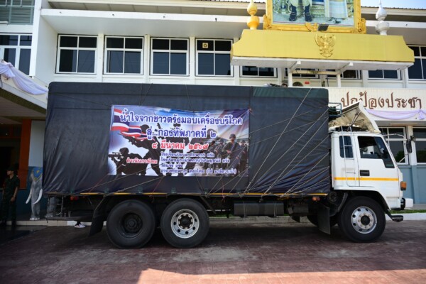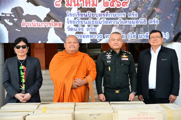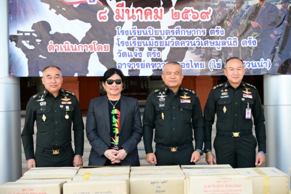 ในการนี้มี อาจารย์คฑาวุธ ทองไทย (อ.ไข่ มาลีฮวนน่า) พร้อมด้วย ดร.สัญญา ศรีวิเชียร และคณะจากจังหวัดตรัง ได้ร่วมกันนำสิ่งของอุปโภค–บริโภค อาทิ ข้าวสาร อาหารแห้ง และเครื่องใช้จำเป็น มอบให้กับกองทัพภาคที่ 2 เพื่อนำไปส่งมอบต่อให้กำลังพลที่ปฏิบัติหน้าที่ตามแนวชายแดนไทย–กัมพูชา
