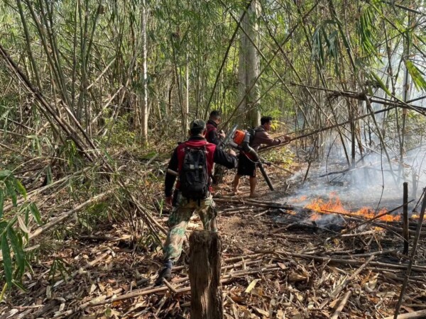 และจุดความร้อนรอบเช้า เวลา 01.36 น. ของวันที่ 10 มีนาคม 2569 D_4460 พิกัด 47P 494644E 1626446N บริเวณป่าองบะ ท้องที่บ้านปากเหมือง หมู่ที่ 7 ตำบลด่านแม่แฉลบ อำเภอศรีสวัสวัสดิ์ จังหวัดกาญจนบุรี ได้นำกำลังเจ้าหน้าที่จำนวน 15 นาย ประกอบด้วย อุทยานแห่งชาติเขื่อนศรีนครินทร์ ร่วมกับเจ้าหน้าที่ชุดปฏิบัติการพิศษดับไฟป่า (เสือไฟกาญจนบุรี) และเจ้าหน้าที่จุดเฝ้าระวังไฟป่าที่ 34/60 (บ้านปากเหมือง) เข้าปฏิบัติการ โดยสามารถควบคุมไฟได้หมดแล้ว และได้ส่งกำลังเข้าไปตรวจตามจุดแนวดำ ซึ่งพบว่าสภาพพื้นที่เป็นป่าเบญจพรรณผสมป่าไผ่ มีพื้นที่เสียหายประมาณ 100 ไร่ โดยเจ้าหน้าที่ทุกนายปลอดภัย ทั้งนี้ ยังไม่ทราบสาเหตุของการการเกิดไฟป่าในครั้งนี้