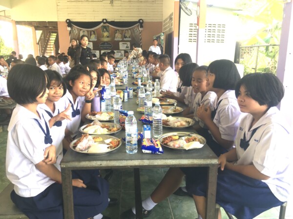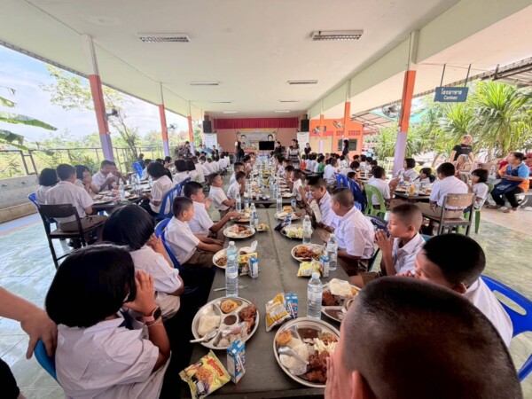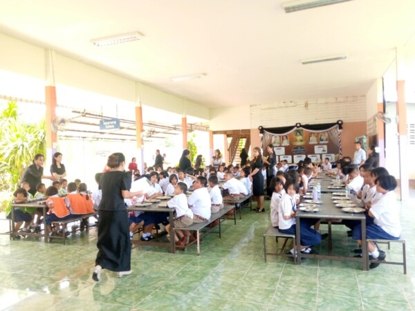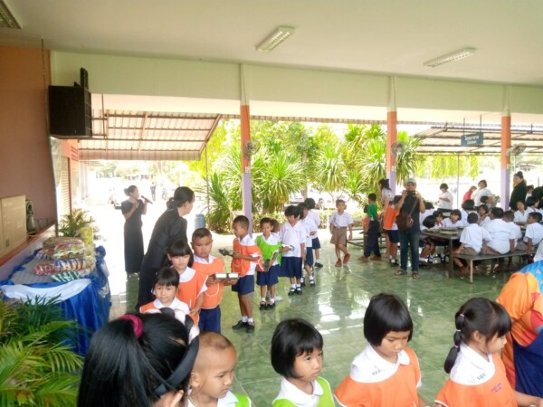 นอกจากการมอบสิ่งของและทุนการศึกษาแล้ว ทางคณะผู้ใจบุญยังได้จัดเตรียม อาหารกลางวันมื้อพิเศษ มาเลี้ยงนักเรียนทุกคน ซึ่งบรรยากาศเต็มไปด้วยความอบอุ่นและเป็นกันเอง สร้างความประทับใจให้แก่คณะครู ผู้ปกครอง และตัวนักเรียนเป็นอย่างมาก
