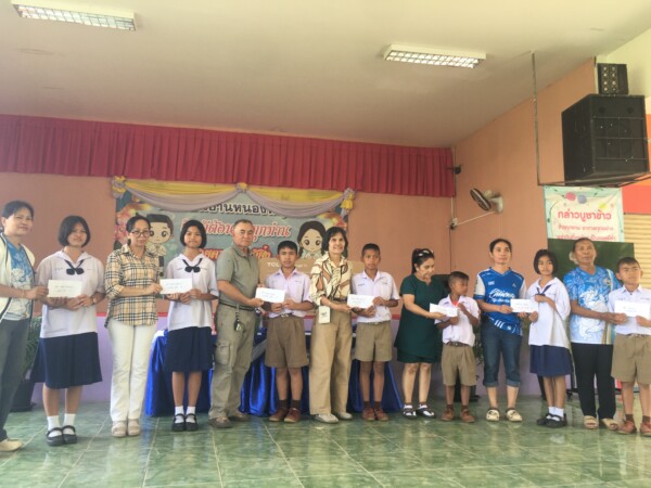 * คุณสิริมา วรรณพฤกษ์ * คุณพิมพ์พร โดยทางคณะได้เดินทางมาเพื่อมอบทุนการศึกษา เครื่องใช้ไฟฟ้า (โทรทัศน์) ขนม และนม ให้แก่เด็กนักเรียน เพื่อสนับสนุนการเรียนรู้และสุขอนามัยที่ดี