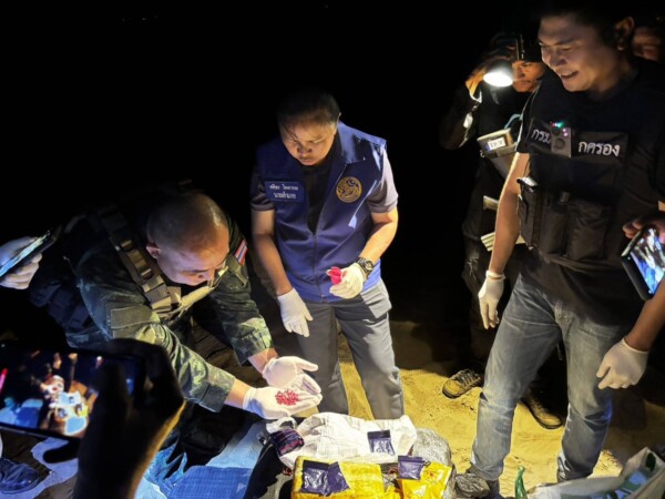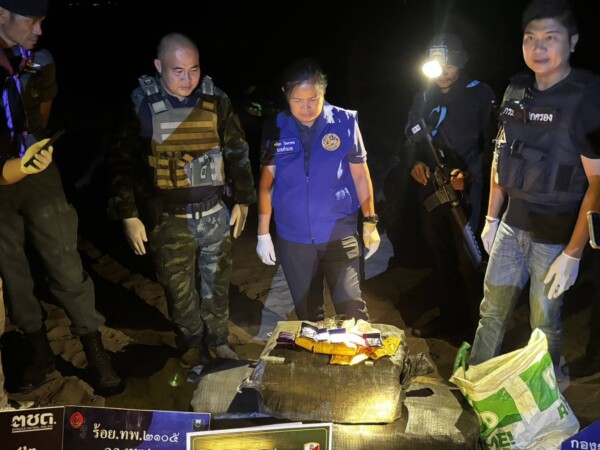 เมื่อวันที่ 10 มีนาคม 2569 ร้อย.ร.กกล.สุรศักดิ์มนตรี ได้รับแจ้งข่าวจาก ชปข.7 ว่าจะมีการลำเลียงยาเสพติด ในพื้นที่ ต.ชะโนด อ.หว้านใหญ่ จ.มุกดาหาร จึงได้จัดกำลังพล บูรณาการร่วมกับ สภ.หว้านใหญ่, ชฝด.3 นฝด.21, ฝ่ายปกครอง อ.หว้านใหญ่, สน.เรือมุกดาหาร เฝ้าตรวจ บริเวณริมฝั่งแม่น้ำโขง ในพื้นที่ บ.ชะโนด ต.ชะโนด อ.หว้านใหญ่ จ.มุกดาหาร จนกระทั้งเวลาประมาณ 20.00 น.ของวันที่ 10 มี.ค 69 เจ้าหน้าที่เฝ้าตรวจสังเกตุเห็นมีรถยนต์ขับลงไปยังหาดมโนภิรมย์ และสังเกตุเห็นเหมือนมีคนกำลังแบกกระสอบลำเลียงขึ้นมาจากเรือ เจ้าหน้าที่จึงแสดงตัวเข้าตรวจสอบ บุคคลดังกล่าวได้ทิ้งกระสอบ อาศัยความมืดและความชำนาญในพื้นที่ หลบหนีไป พร้อมทั้งรถยนต์คันดังกล่าวก็ได้ขับหนีขึ้นจากหาดและหลบหนีเข้าไปในหมู่บ้าน จากการเข้าตรวจสอบ พบกระสอบสีดำภายในบรรจุยาเสพติด(ยาบ้า) จำนวน 3 กระสอบ (200,000/กระสอบ รวมจำนวนประมาณ 600,000 เม็ด) และถุงพลาสติกสีขาว Happy water จำนวน 100 ซอง ตกอยู่ที่พื้นบนหาด เจ้าหน้าที่จึงได้ร่วมบันทึกภาพที่เกิดเหตุไว้เป็นหลักฐาน หลังจากนั้นได้นำของกลางทั้งหมด ไปเก็บรักษาไว้ที่ ฐาน บก.ร้อย. ร้อย.ร.กกล.ฯ เพื่อดำเนินการตามขั้นตอนทางกฎหมายต่อไป