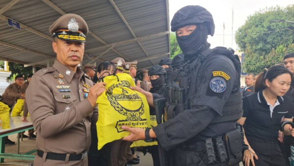 จากนั้น พล.ต.ท.สยามฯ ผบช.น. ได้มีการทดสอบยิงเป้า โดยใช้อาวุธปืนยาว M4 พร้อมเขียนลายเซ็น เพื่อที่ระลึกและมอบถุงยังชีพแก่ข้าราชการตำรวจกก.สส.บก.น.9 เพื่อเป็นขวัญกำลังใจ พร้อมกับถ่ายภาพร่วมกันเป็นที่ระลึก