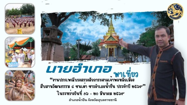 วันที่ 17 มี.ค.69 ผู้สื่อข่าวรายงานว่า นายอาทิตย์ บุษบา นายอำเภอน้ำยืน จังหวัดอุบลราชธานี เปิดเผยว่า อำเภอน้ำยืน ได้จัดงาน “ประเพณีบวงสรวงสักการะศาลเจ้าพ่อหลักเมือง สืบสานวัฒนธรรม 4 ชนเผ่า ชาวอำเภอน้ำยืน ประจำปี 2569” ขึ้น ในระหว่างวันที่ 16 – 20มีนาคม 2569 ณ บริเวณศาลเจ้าพ่อหลักเมือง และหน้าที่ว่าการอำเภอน้ำยืน จังหวัดอุบลราชธานี จึงขอเชิญชวนพี่น้องประชาชนร่วมสักการะสิ่งศักดิ์สิทธิ์คู่บ้านคู่เมือง และร่วมอนุรักษ์วัฒนธรรมประเพณีของชาวอำเภอน้ำยืน ซึ่งสะท้อนเอกลักษณ์ของความหลากหลายทางวัฒนธรรมของชุมชนในพื้นที่