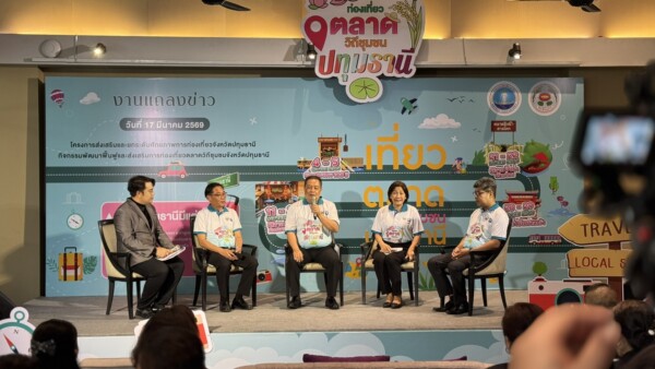 วันนี้ (17 มี.ค.69) เวลา 13.30 น. ที่ โรงแรมทินิดี บางกอก กอล์ฟ คลับ อำเภอเมืองปทุมธานี จังหวัดปทุมธานี นายเอกวิทย์ มีเพียร ผู้ว่าราชการจังหวัดปทุมธานี เป็นประธานแถลงข่าวโครงการพัฒนาศักยภาพและยกระดับการท่องเที่ยวจังหวัดปทุมธานี กิจกรรมพัฒนาฟื้นฟูและส่งเสริมการท่องเที่ยวตลาดวิถีชุมชนจังหวัดปทุมธานี พร้อมด้วยนางสาวแสงจันทร์ แก้วประทุมรัสมี ท่องเที่ยวและกีฬาจังหวัดปทุมธานี นายคเชนทร์ชัย แพงจันทร์ พัฒนาการจังหวัดปทุมธานี นายอภิรัตน์ ทวีทรัพย์ รองผู้อำนวยการการท่องเที่ยวแห่งประเทศไทย สำนักงานกรุงเทพมหานคร เข้าร่วมแถลงข่าว โดยมีหัวหน้าส่วนราชการ เครือข่ายท่องเที่ยวและกีฬาจังหวัดปทุมธานี และหน่วยงานที่เกี่ยวข้องเข้าร่วมงาน