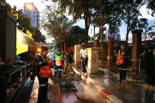 สำหรับการดูแลความสะอาดพื้นที่ดังกล่าว เจ้าหน้าที่ฝ่ายรักษาความสะอาดและสวนสาธารณะ สำนักงานเขตฯ ได้ดำเนินการล้างทำความสะอาดทางเท้าในบริเวณดังกล่าวอย่างต่อเนื่อง เพื่อรักษาความสะอาด ลดคราบสกปรก และช่วยบรรเทาความรุนแรงจากสถานการณ์ฝุ่นละออง PM2.5